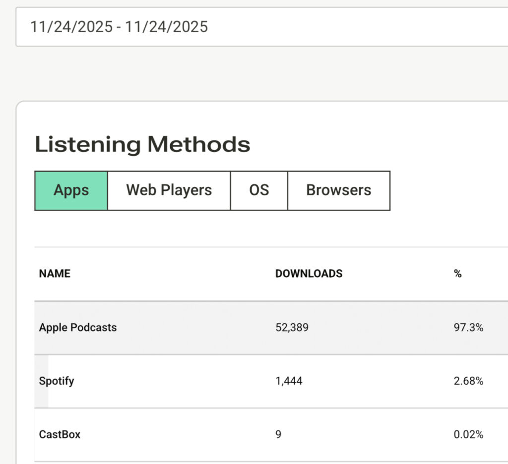 Your show receives consistent, steady daily downloads from targeted listeners who actually match your niche.